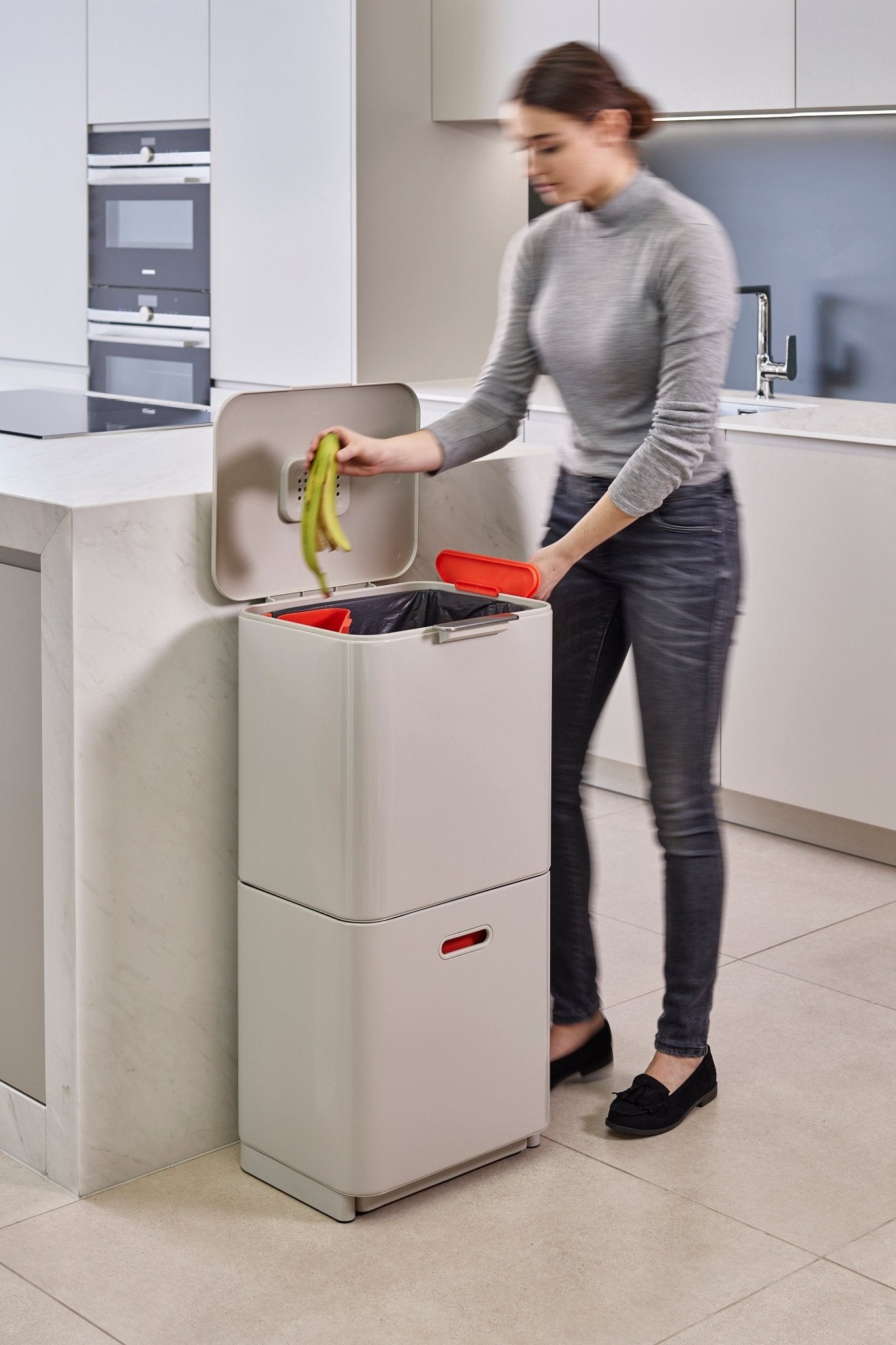 Un bote de basura es el héroe silencioso del hogar, pero pocos están preparados para manejar basura general, desechos orgánicos y reciclaje al mismo tiempo. Te presentamos Totem, nuestro bote galardonado que cuenta con compartimentos especiales para cada tipo de residuo, permitiéndote separarlo todo en una sola unidad compacta. Además, su sistema integrado de control de olores mantiene tu cocina con un aroma fresco en todo momento.