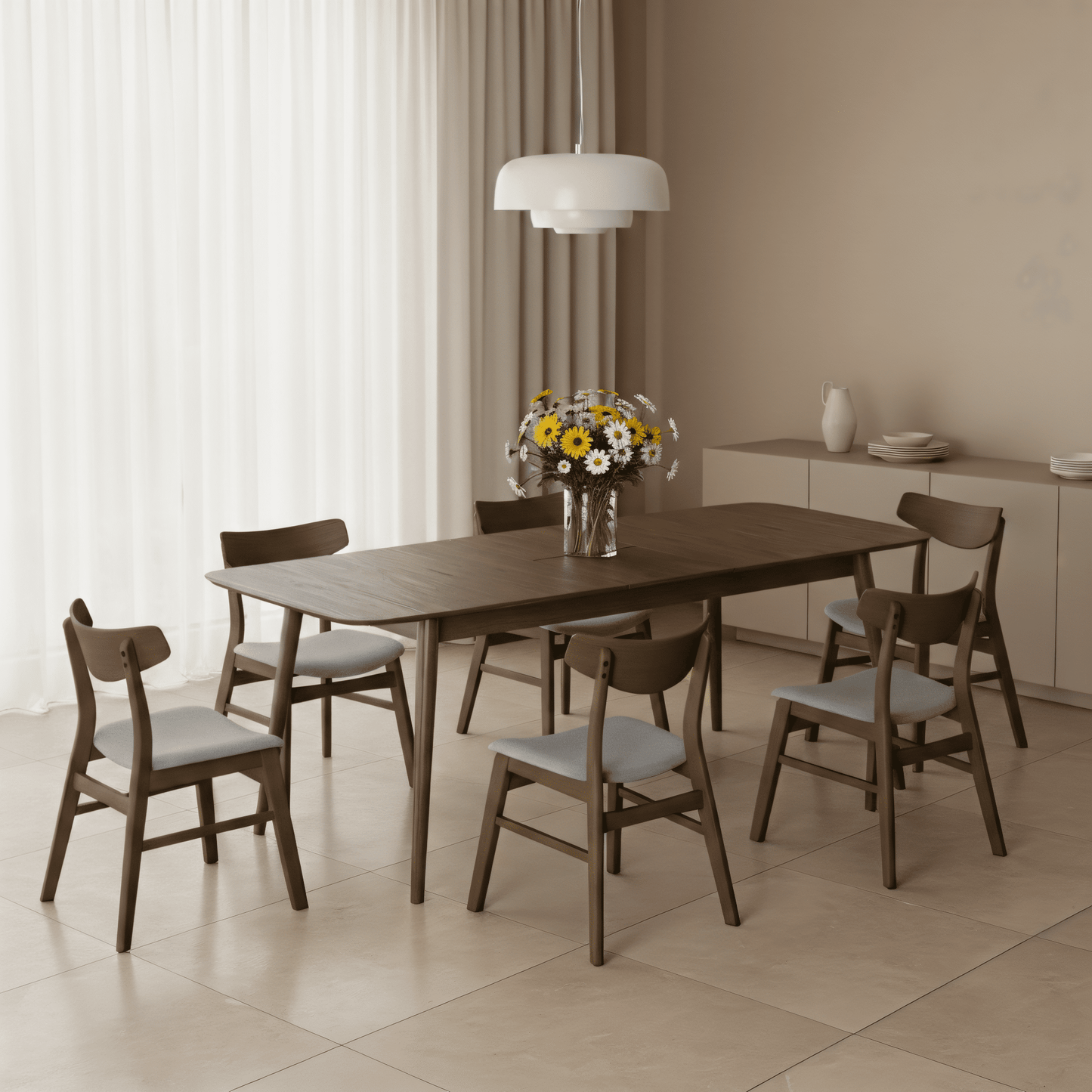 Juego de Comedor Atenas de Madera con 6 Sillas Tapizadas