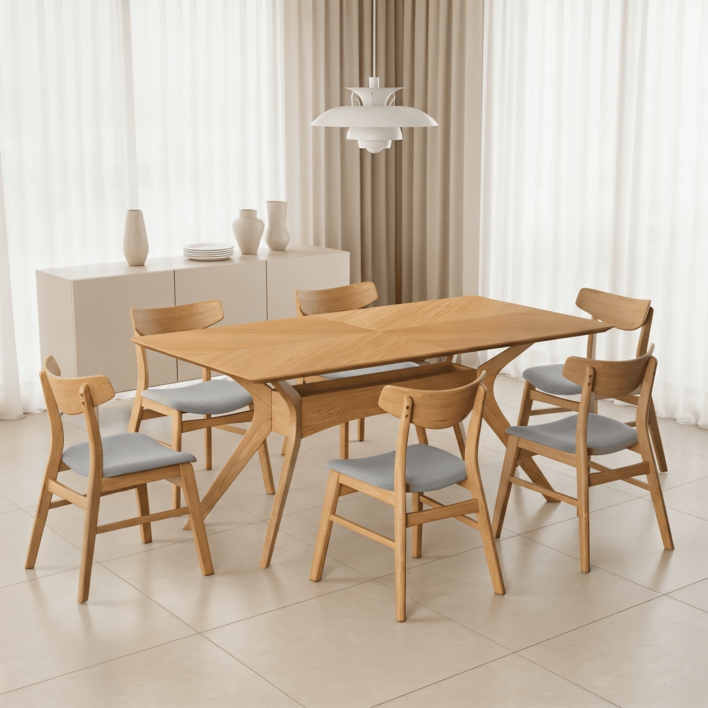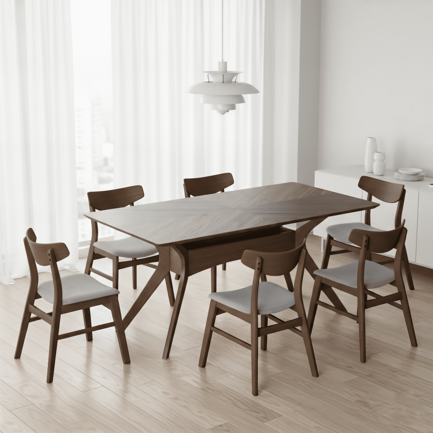 Juego de Comedor Dallas de Madera con 6 Sillas Tapizadas